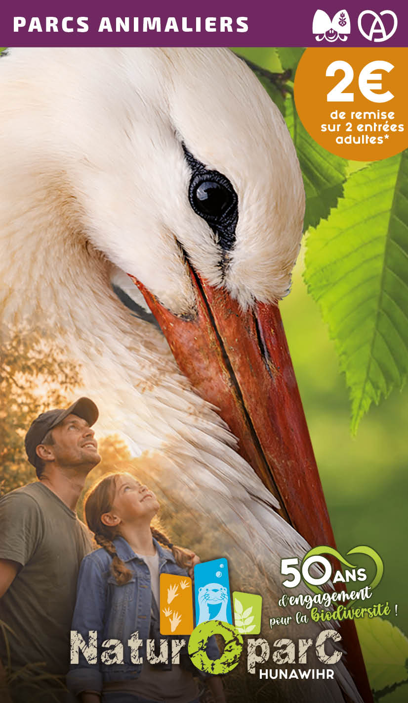 C’est au coeur du vignoble, à Hunawihr, que NaturOparC vous accueille pour une agréable visite dans un écrin de verdure… Depuis 50 ans, ce parc animalier œuvre avec passion pour la préservation d’espèces locales menacées, comme la Cigogne blanche, la Loutre d’Europe ou le Grand Hamster, mais aussi pour la sensibilisation de tous à la biodiversité, grâce à de nombreux supports éducatifs !